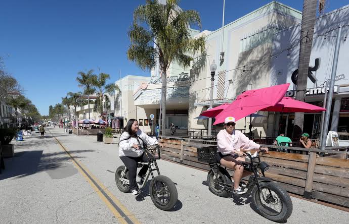 Ventura streets often include shared spaces between pedestrians and cyclists.